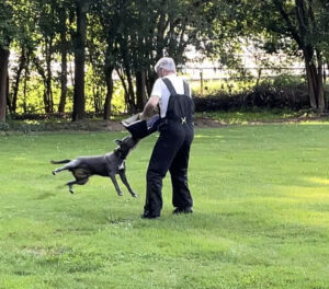 Jedoch genießt auch ein Polizeihund eine Schutzhundeausbildung als Teil seiner Ausbildung, die aber wesentlich komplizierter aufgebaut ist und meist auch schneller vonstatten gehen muss als bei einem im Sport geführten Hund. In der Ausbildung des Polizeihunds geht es letztlich nicht um das Spiel mit dem Helfer um die Beute Ärmel wie im Sport, sondern tatsächlich darum, einen Täter im Ernstfall stellen zu können: Im Polizeihundbereich wird der Hund darauf trainiert, gezielt Menschen zu stellen, im Notfall auch anzugreifen, und auf Befehl des Hundeführers auch ohne Zögern wieder abzulassen.